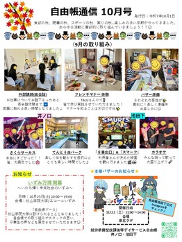 自由帳通信10月号が発行されましたのでお知らせさせていただきます(^^)